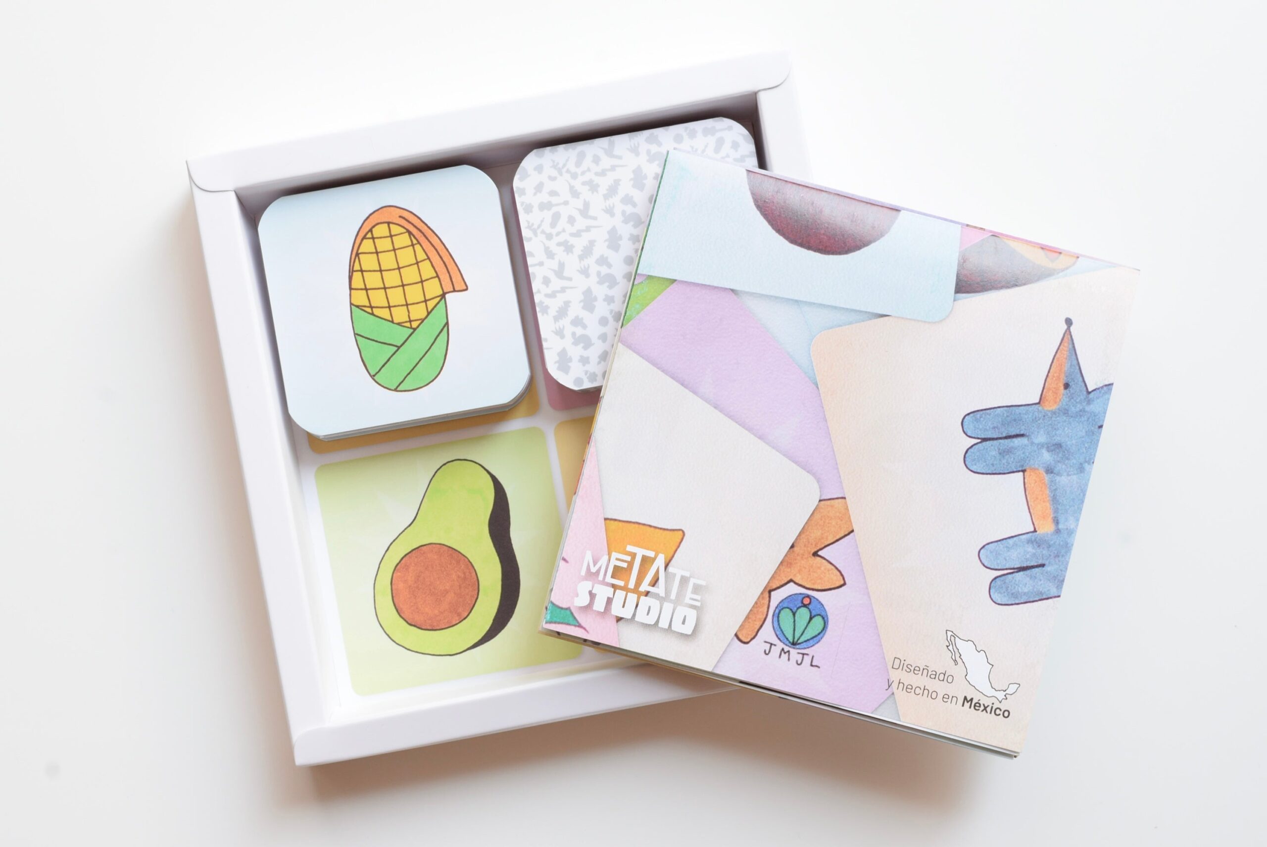 Alimenta tu memoria mexicana. Conoce una divertida selección de animales, plantas y cultivos de México. Encuentra el águila, el aguacate, el ajolote, el cacao, el colibrí, el conejo, el frijol, el maguey, el maíz, el tigrillo y muchos más. Incluye póster coleccionable en español, náhuatl e inglés. Diseñado y hecho en México. Incluye: 32 pares en una cajita de viaje.